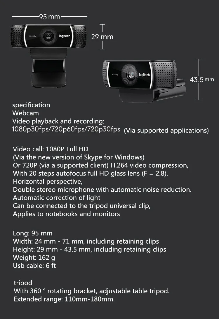Maximum resolution: 1080P/30FPS, 720P/60FPS
