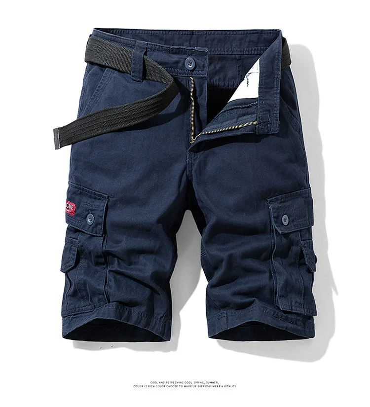 2025 New Summer men's fashionable multi pocket workwear shorts thin casual and fashionable denim multi pocket shorts